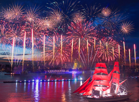 В 1.40 над акваторией Невы начался светопиротехнический спектакль. Десятые «Алые паруса» прогремели над городом грандиозным салютом и лазерным шоу под аккомпанемент большого эстрадно-симфонического оркестра и хора. Кульминационным моментом торжества стал выход бригантины под алыми парусами – символа праздника выпускников.